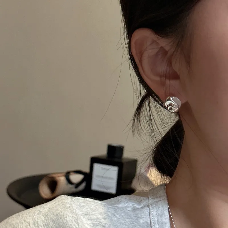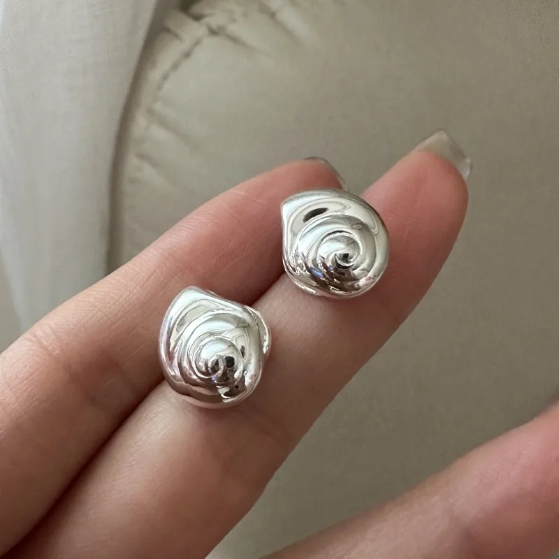 S925 Sterling Silver Korean Version Niche Design Sense Texture Heavy Industry Snail Earrings Fashion Retro Ear Jewelry