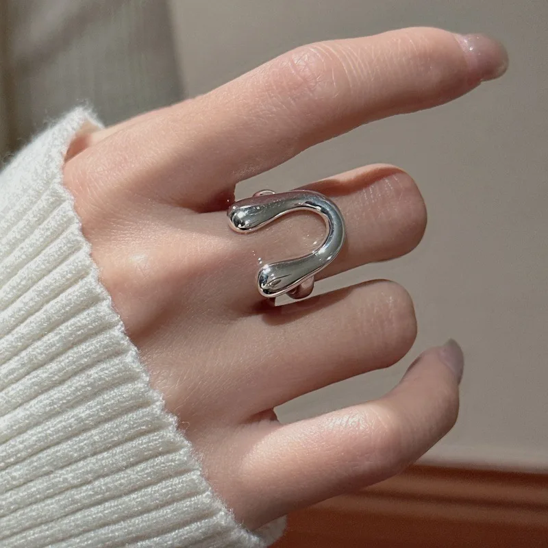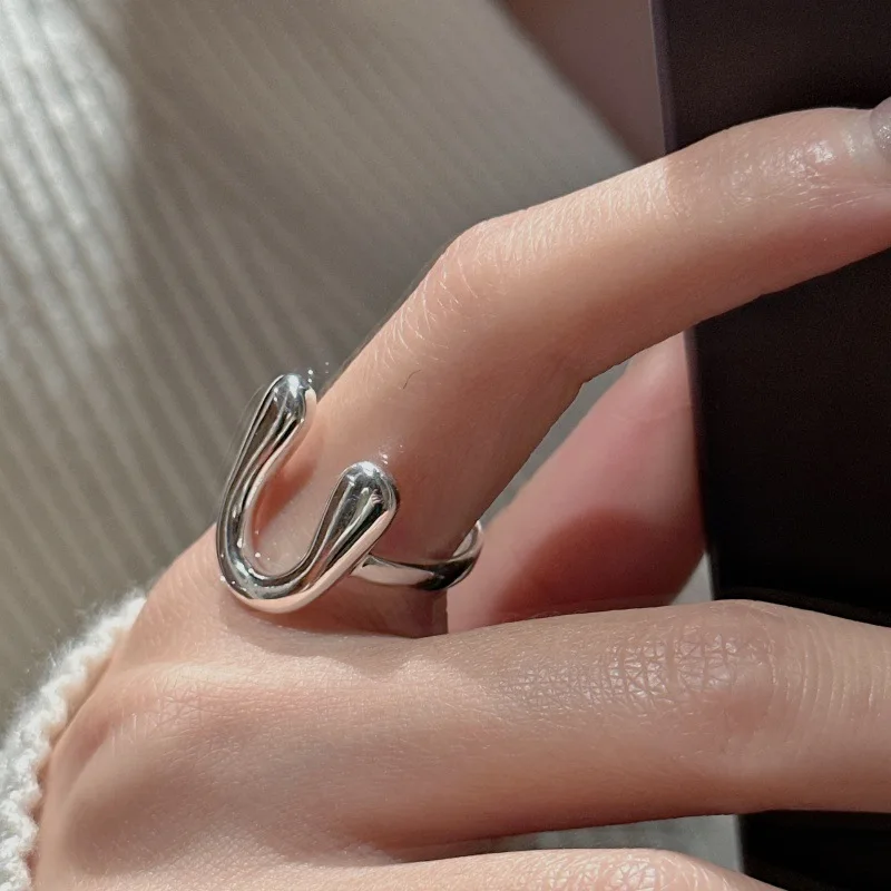 S925 Sterling Silver Korean Version Niche Design Sense U-shaped Retro Basic Ring Wholesale 44JZ53