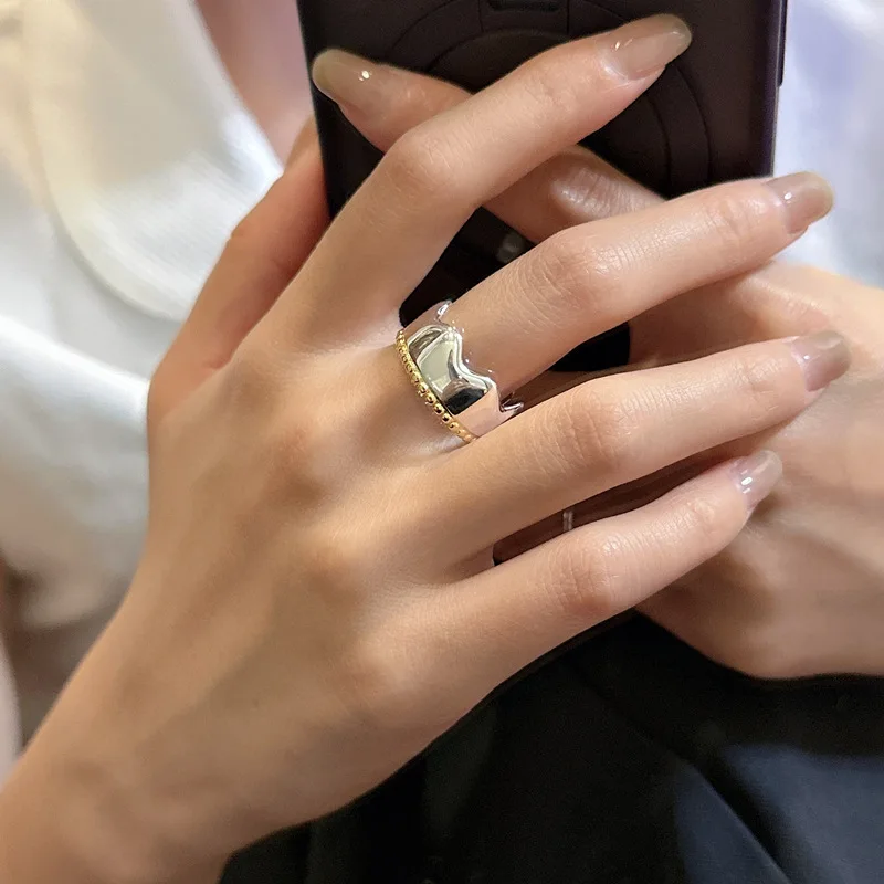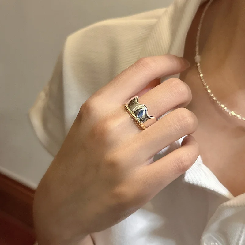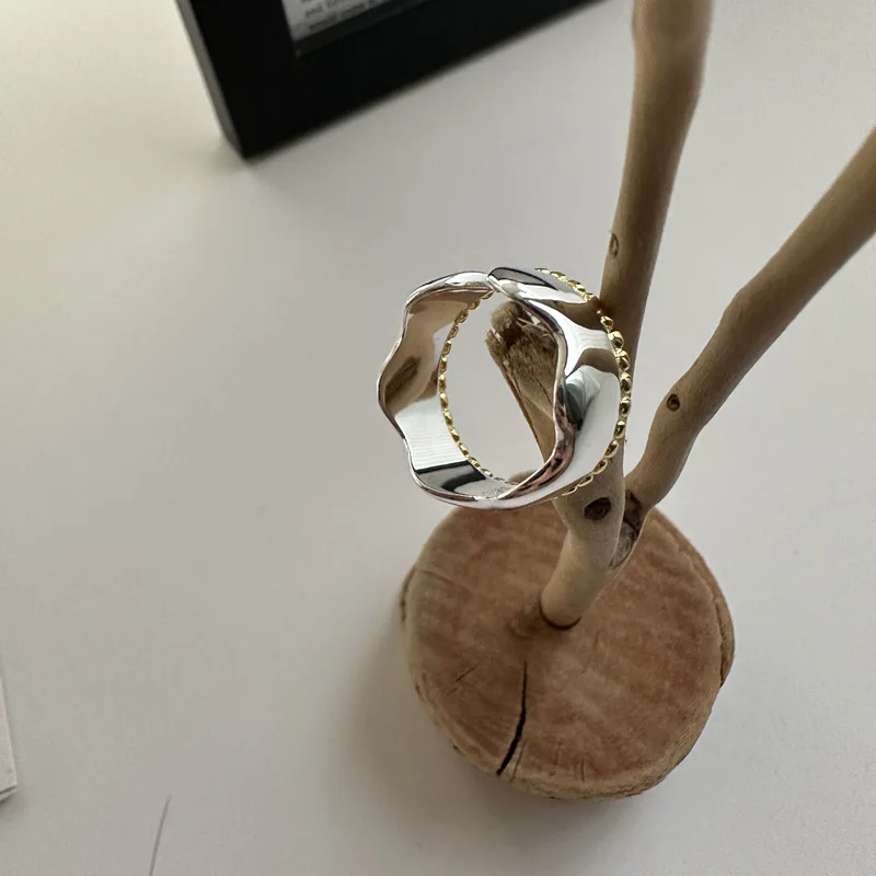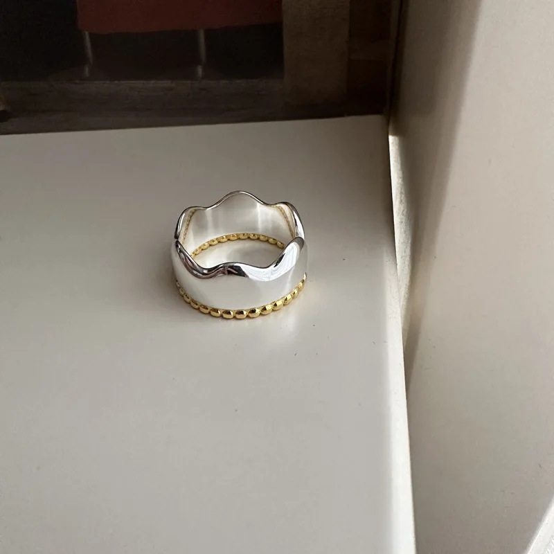 S925 Sterling Silver Korean Version Niche Design Sense Wave Texture Contrast Ring Japan Style INS Vintage Ring Wholesale