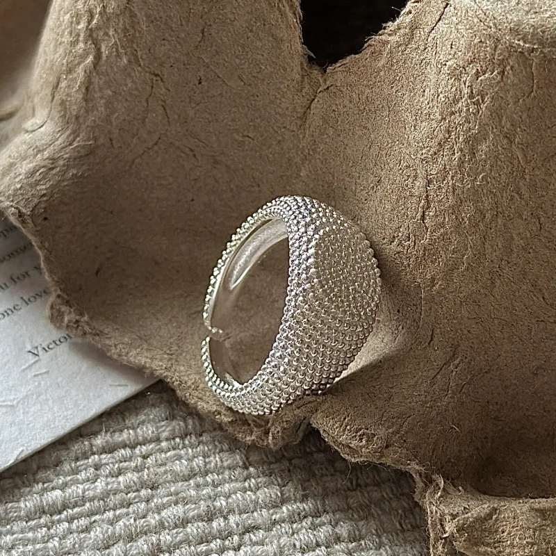 S925 Sterling Silver Korean Version of Niche Design Retro Texture Simple Basic Ring South Korea’s Fashion Ring