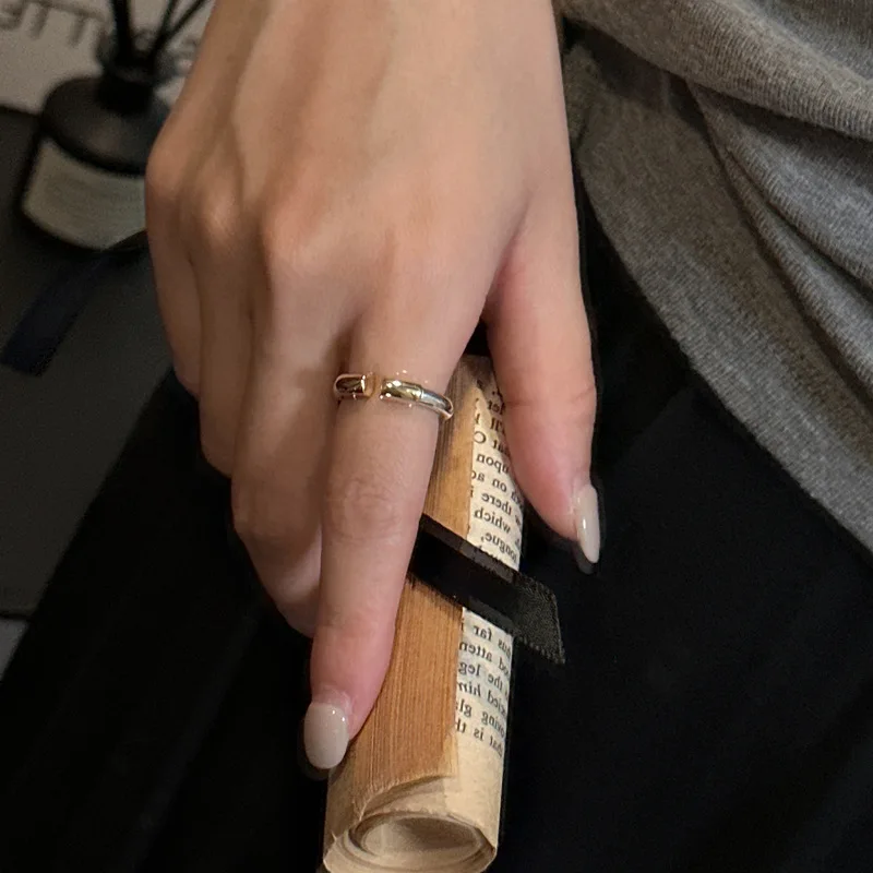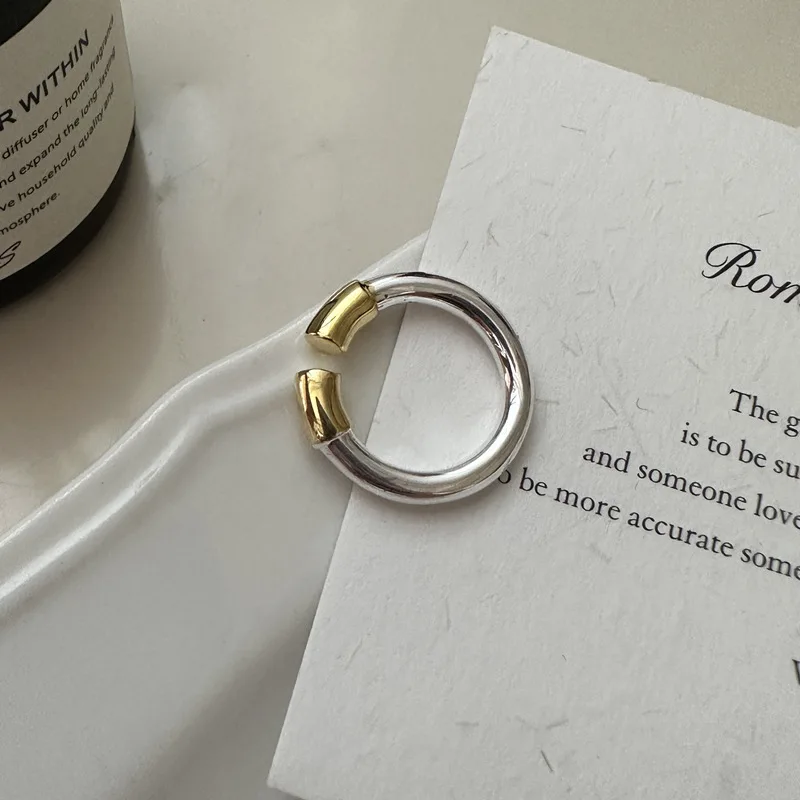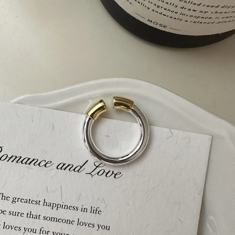 S925 Sterling Silver Korean Version of Niche Design Sense of Gold and Silver Contrast Tail Ring Original Single Ring Wholesale