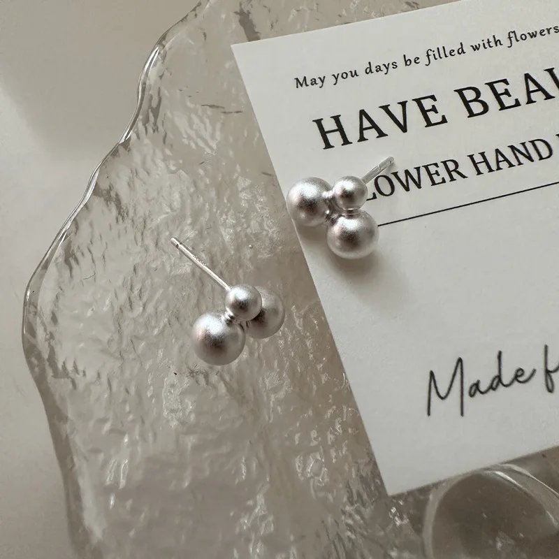 S925 Sterling Silver Korean Version of Niche Matte Basic Ball Earrings Fashion Texture Wholesale
