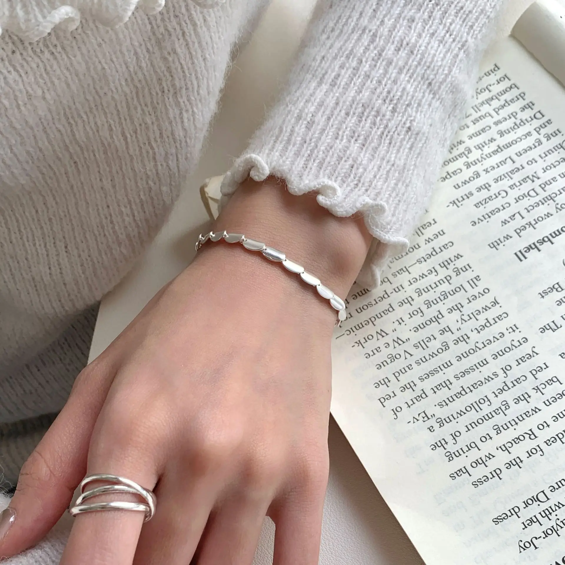 S925 Sterling Silver Matte Doudou Scale Bracelet Female Korean Simple Niche Design High-end Retro Ins