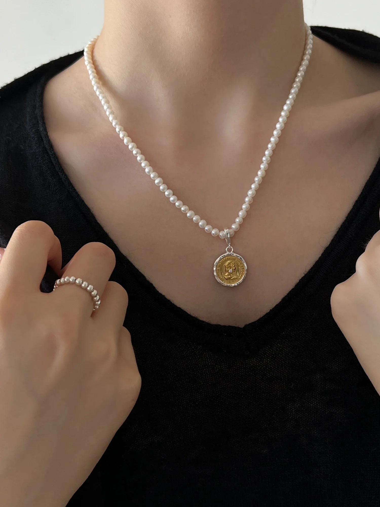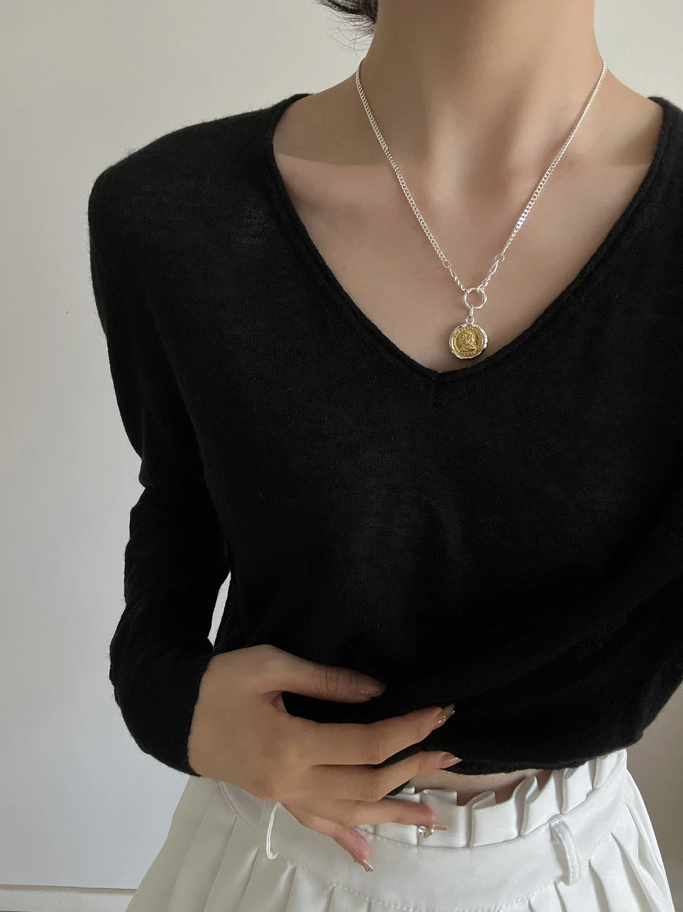 S925 Sterling Silver Necklace for Women Small Design Sense Ancient Coin Queen Statue Pendant Personalized Simple Collar Chain