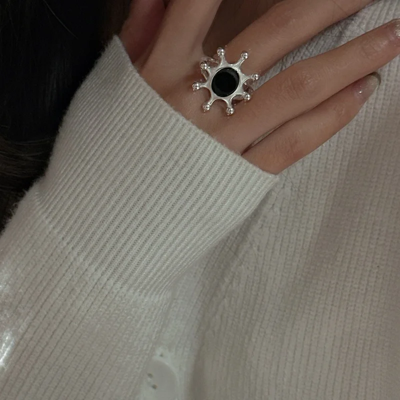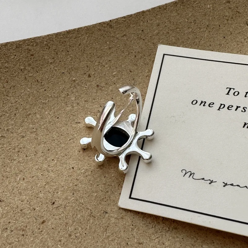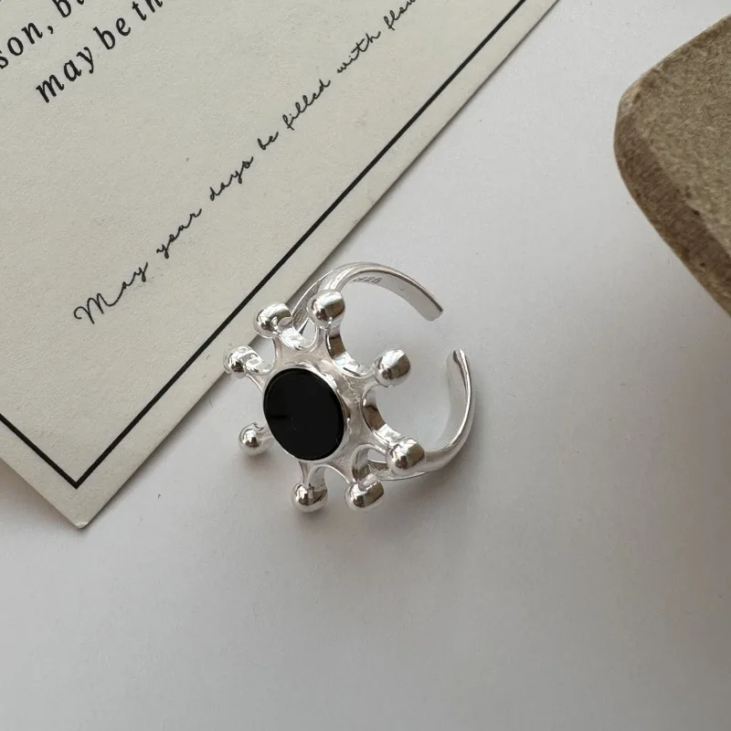 S925 Sterling Silver Niche Design Agate Sheet Simple Ring Simple Blogger Ring Wholesale