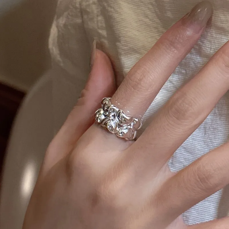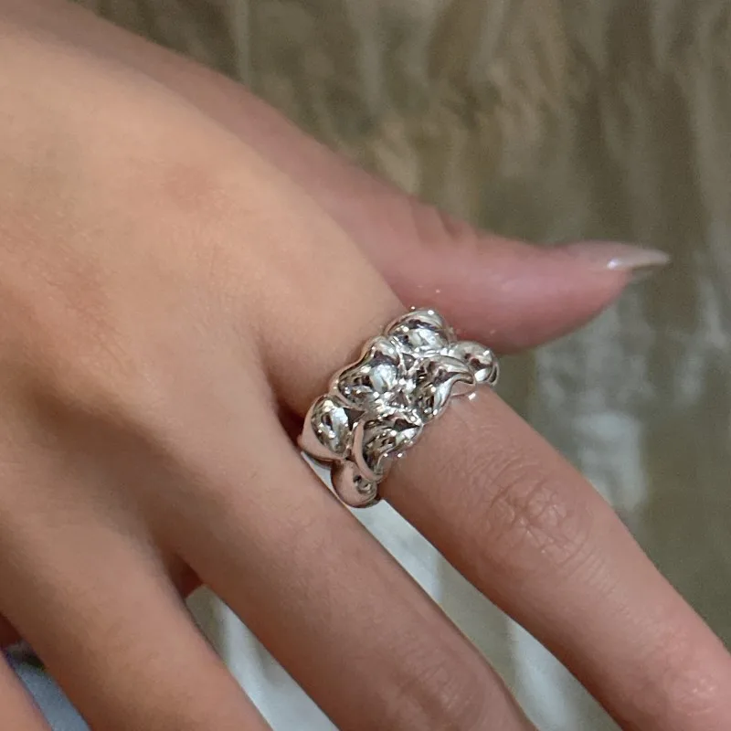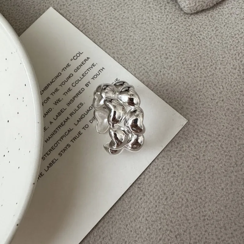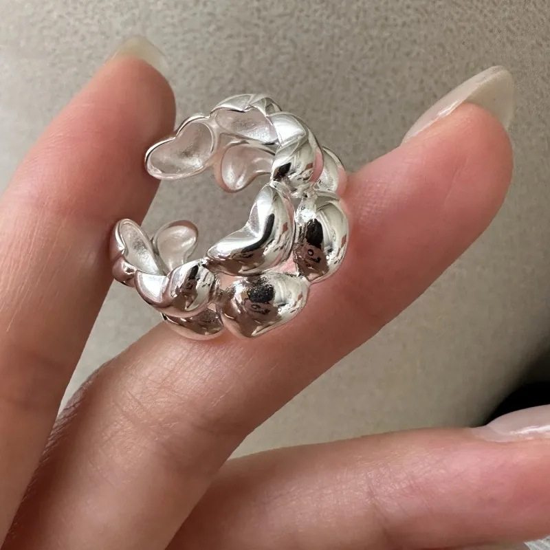 S925 Sterling Silver Niche Design Double-layer Love Ring Retro Simple Heart Ring