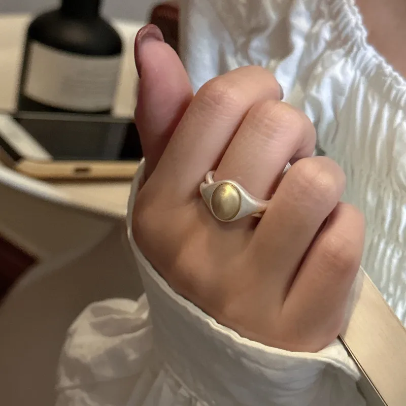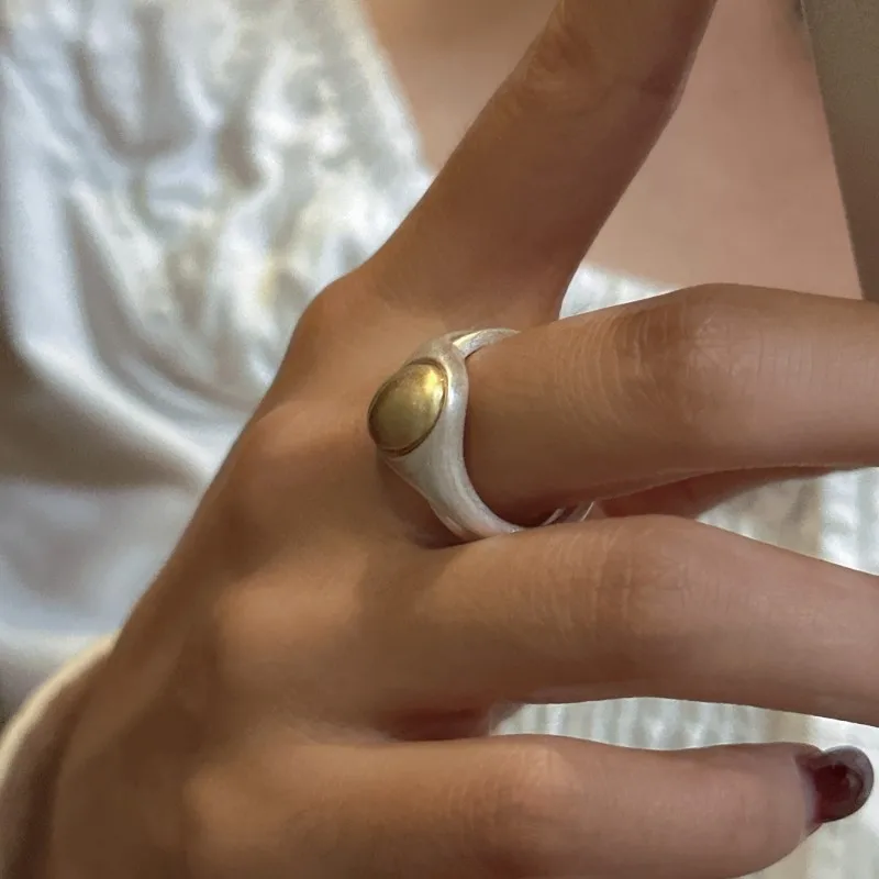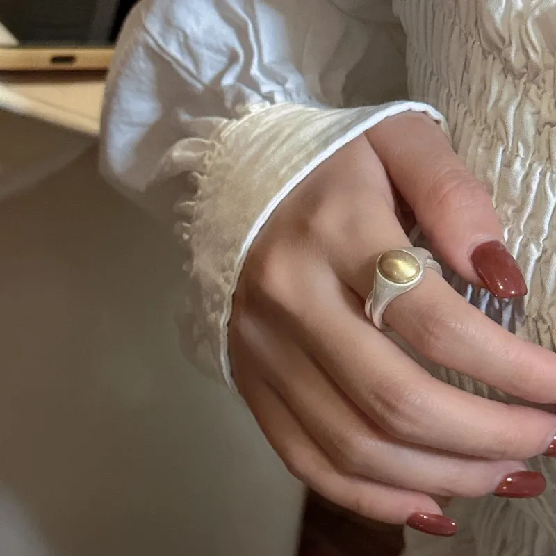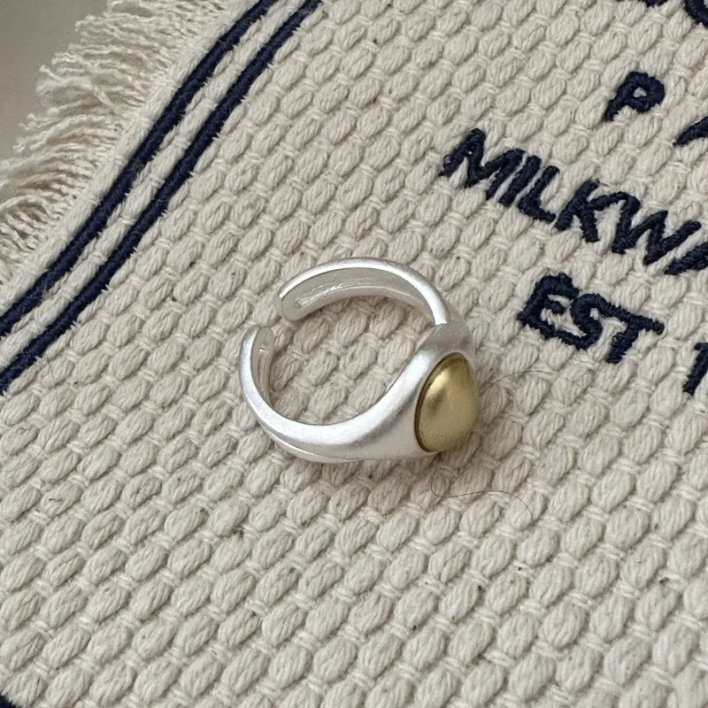 S925 Sterling Silver Niche Design Matte Small Golden Bean Ring Pure Handmade Simple and Fashionable INS Wind Ring