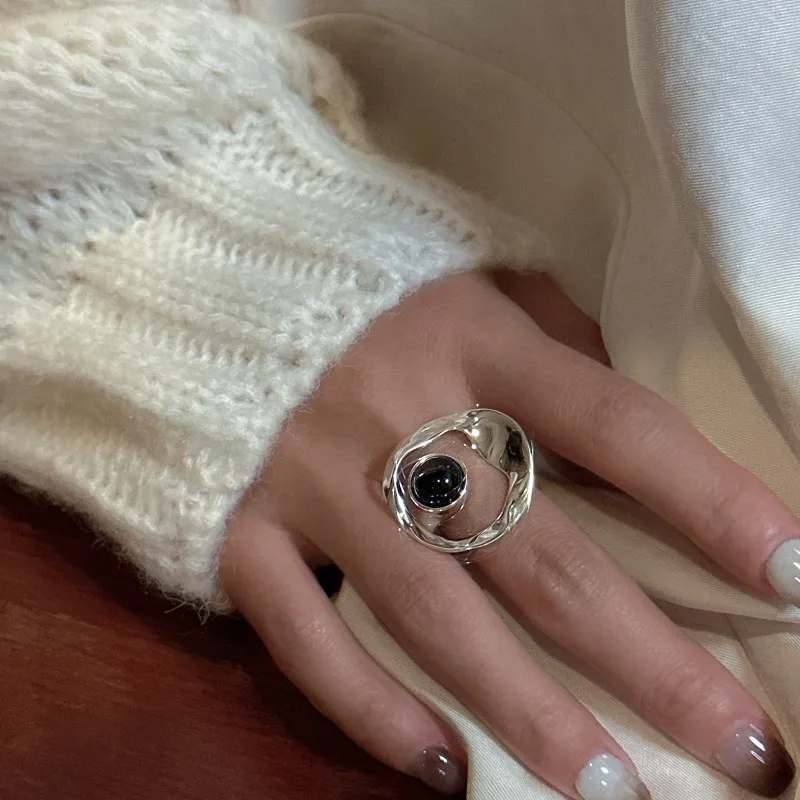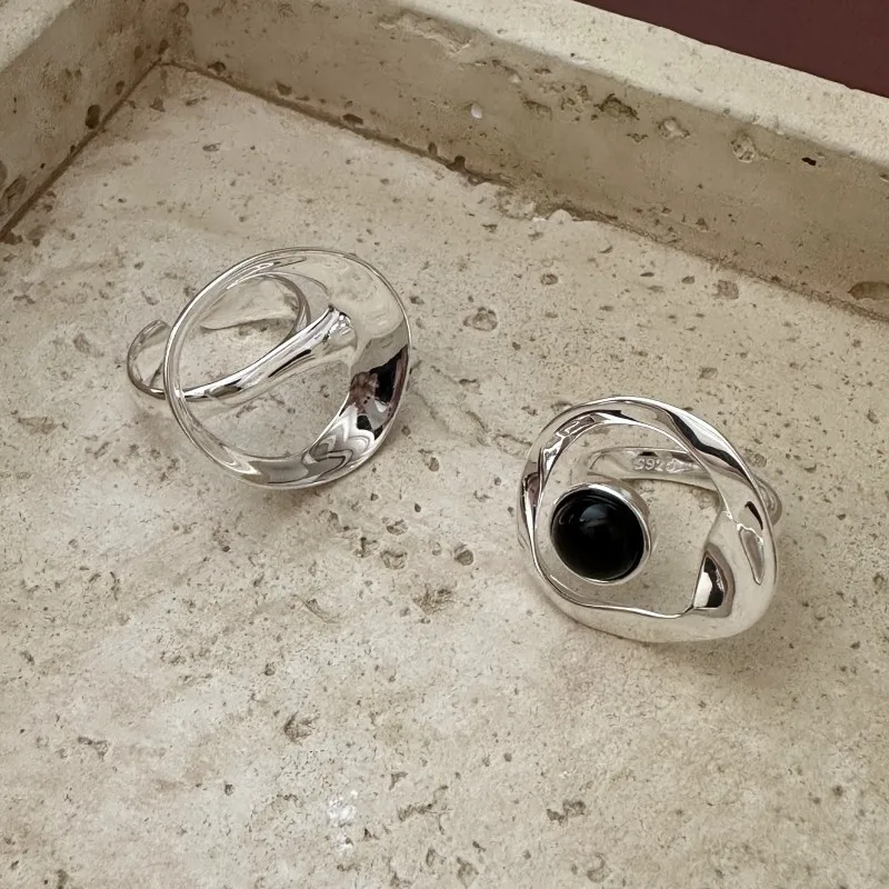 S925 Sterling Silver Niche Design Sense Retro Cross Agate Set Ring Combination Simple Wholesale