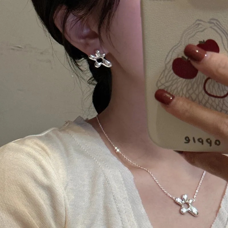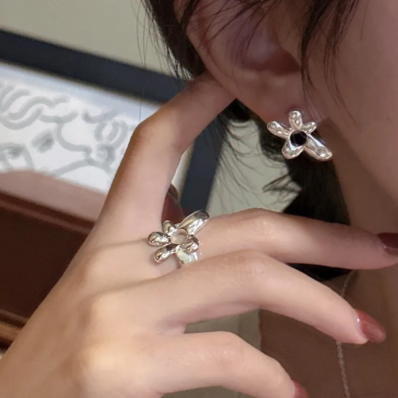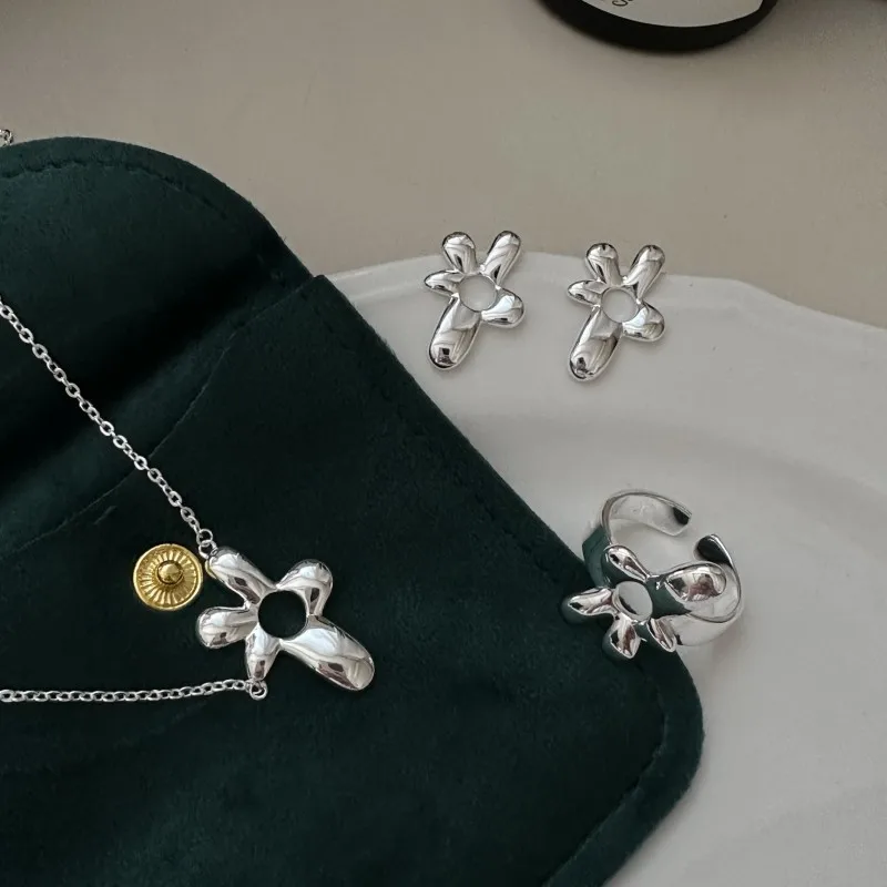 S925 Sterling Silver Niche Design Special-shaped Flower Earrings Simple Retro Ear Jewelry Retro Wholesale Jewelry