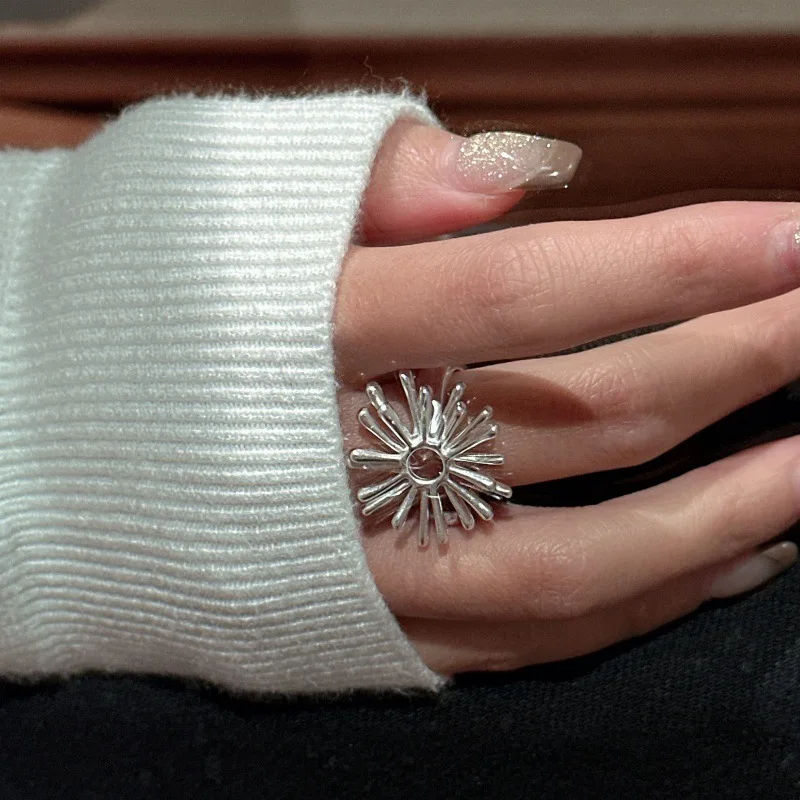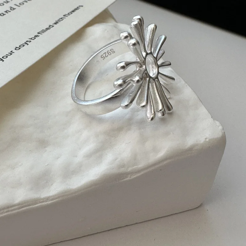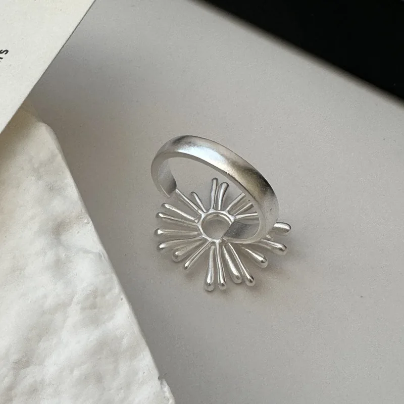 S925 Sterling Silver Niche Design Sunflower Feeling Retro Simple Fireworks Ring Simple Wholesale