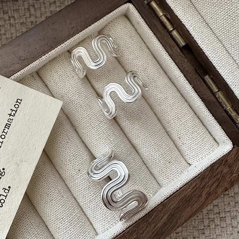 S925 Sterling Silver Niche Design Texture Lightning Bending Retro Simple Ring Fashion Ring Wholesale