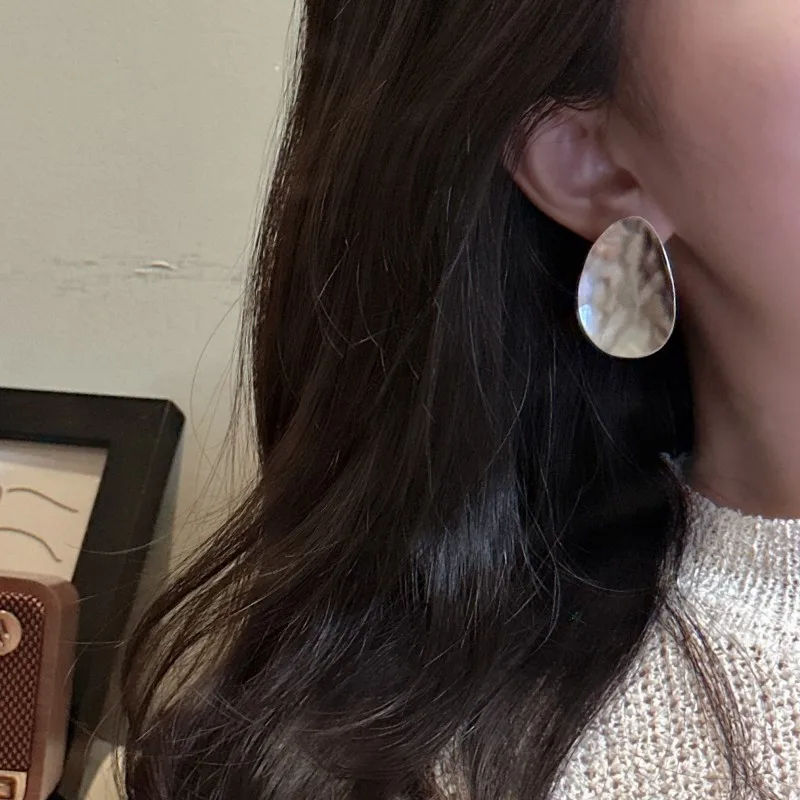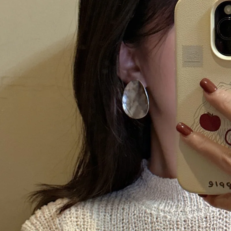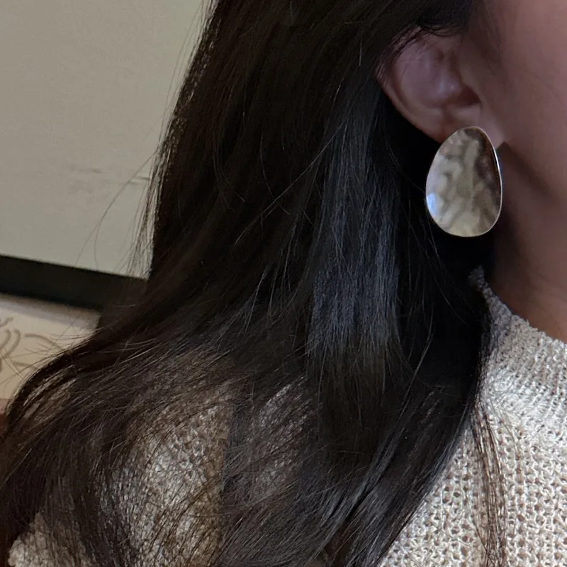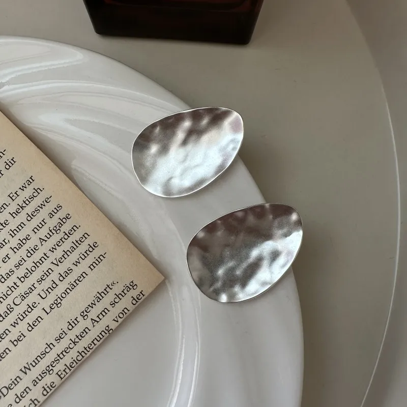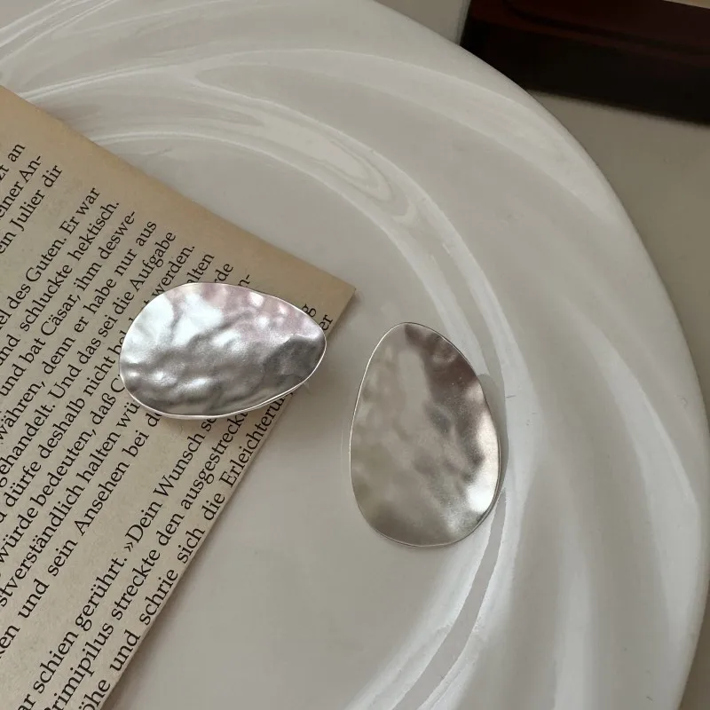 S925 Sterling Silver Niche Matte Texture Stud Earrings Simple Retro Heavy Industry Earrings Purely Handmade Real