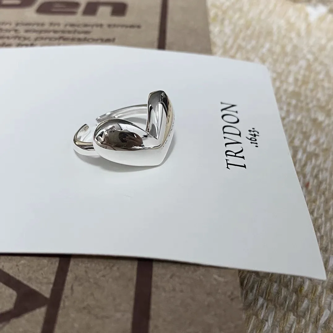S925 Sterling Silver Personalized Smooth Large Love Open Ring Women’s Ins Wind Open Ring Commuter Daily