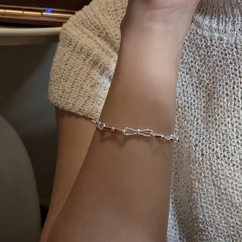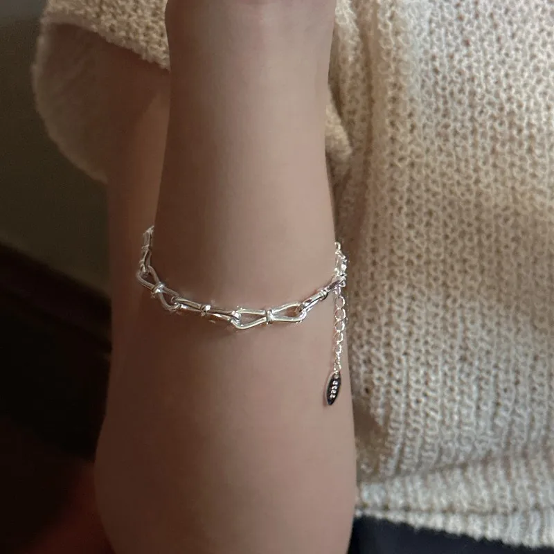 S925 Sterling Silver Real Handmade Design Sense Knotted Fashion Bracelet Simple Retro First Jewelry Wholesale
