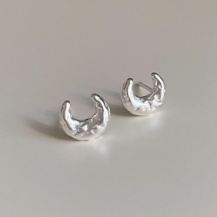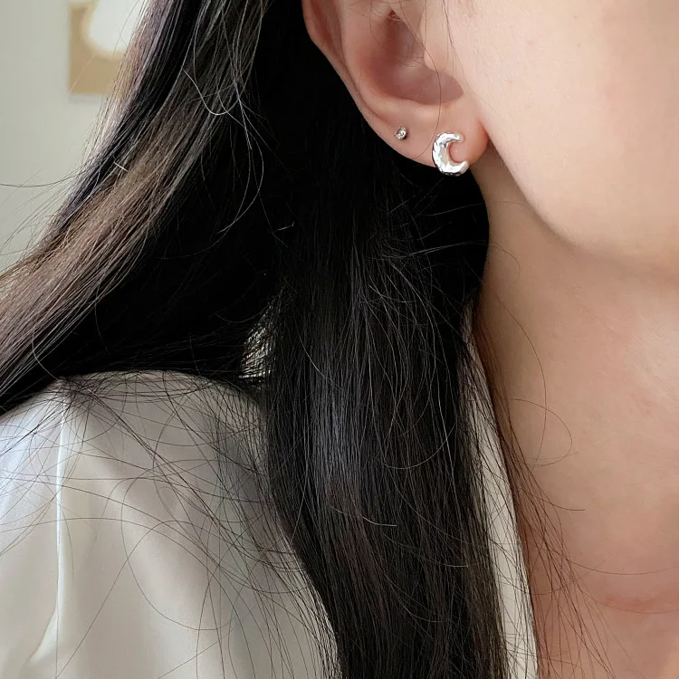 S925 Sterling Silver Texture Moon Earrings Women’s Niche Design High-end Korean Simple Ins Style Ear