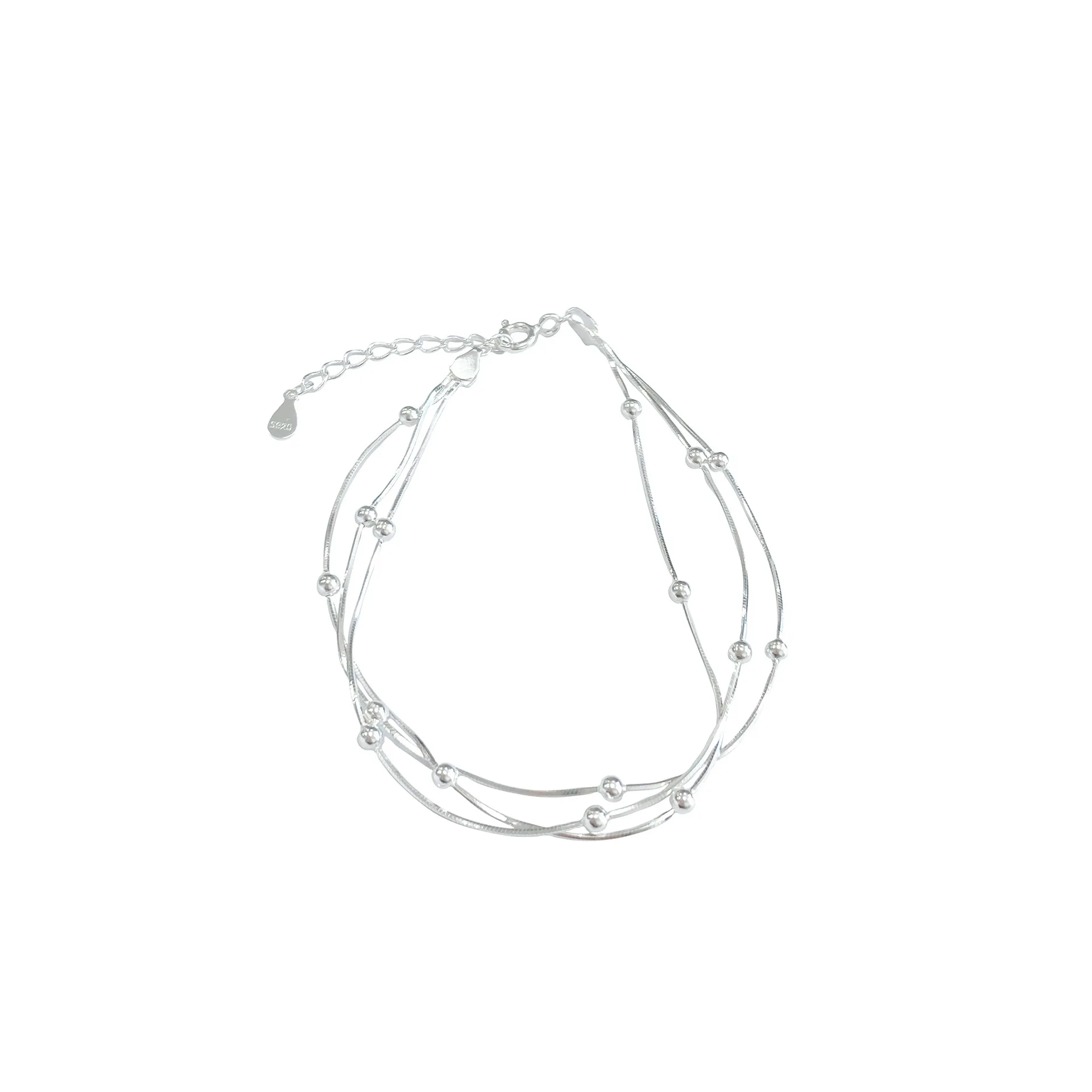 S925 Sterling Silver Three-layer Bead Snake Bone Bracelet Female Korean Cold Ins High-end Niche Design New Jewelry