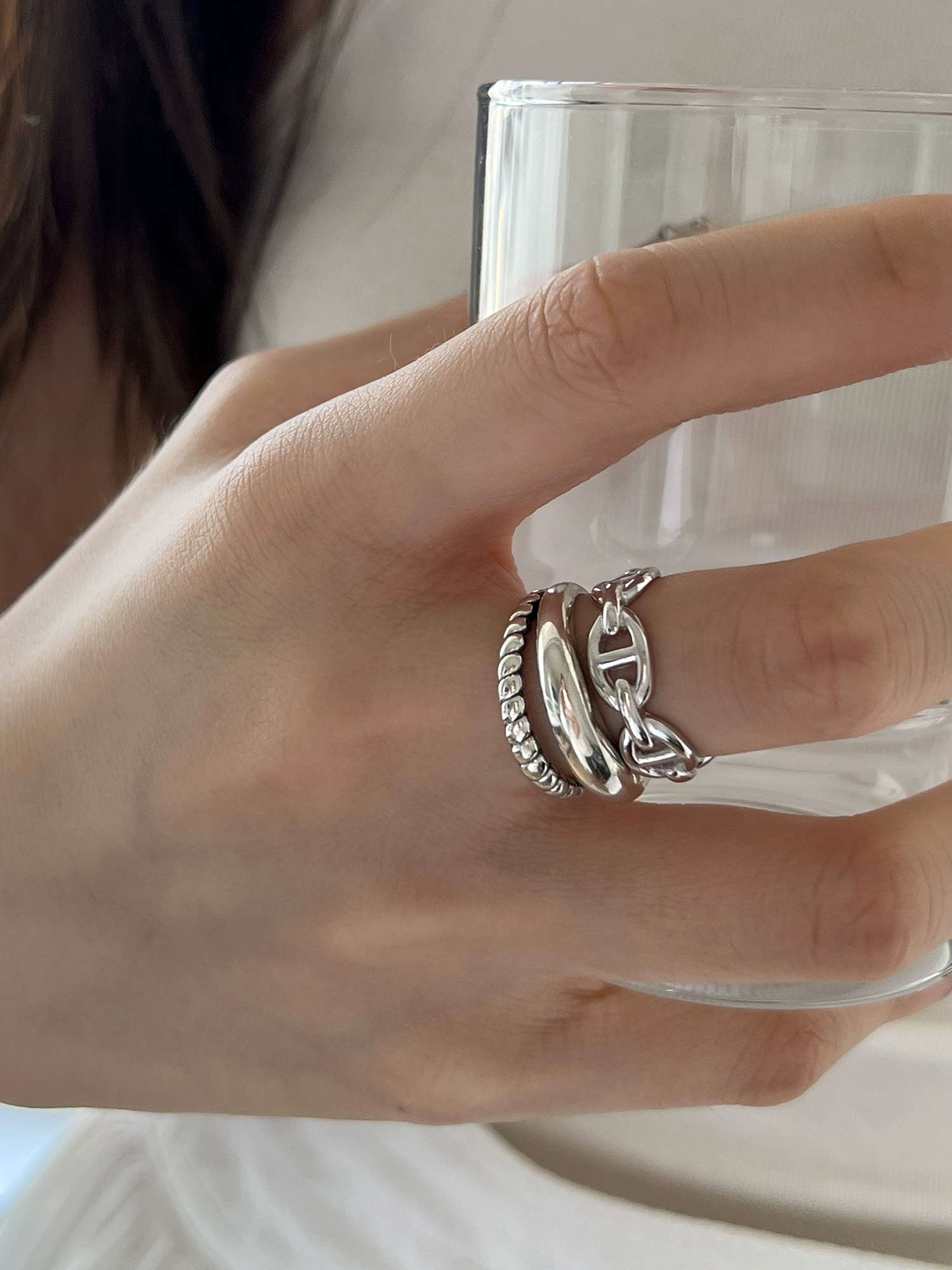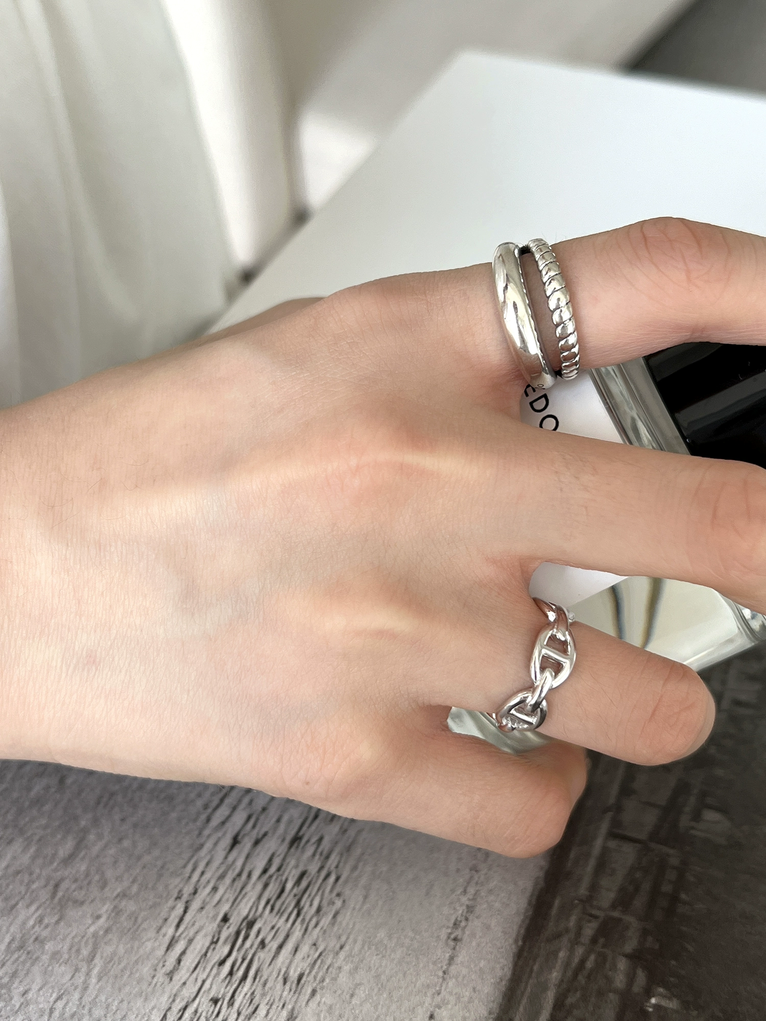 S925 sterling silver women’s ring niche design minimalist twisted double-layer ring old texture pig nose index finger ring trend