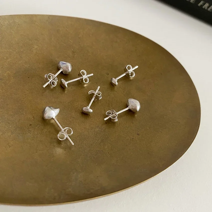 Simple Ear Irregular Fold Texture Remodeling Stone Earrings Female Niche 925 Sterling Silver Basic Paragraph Do Not Pick