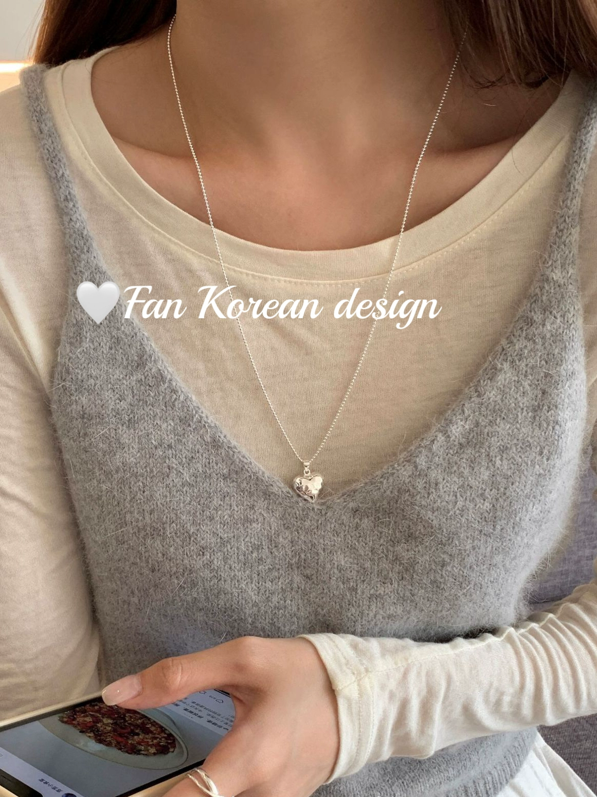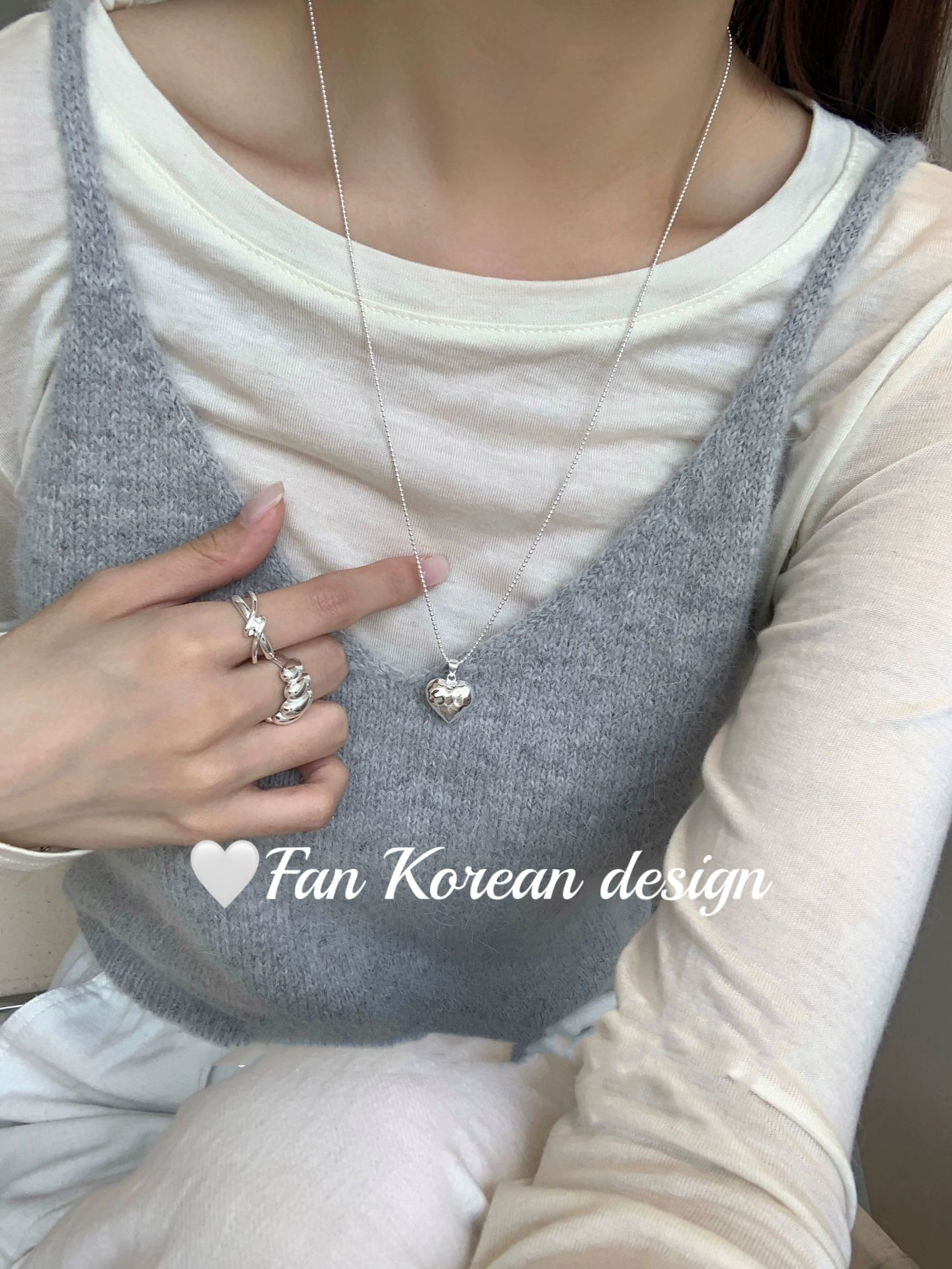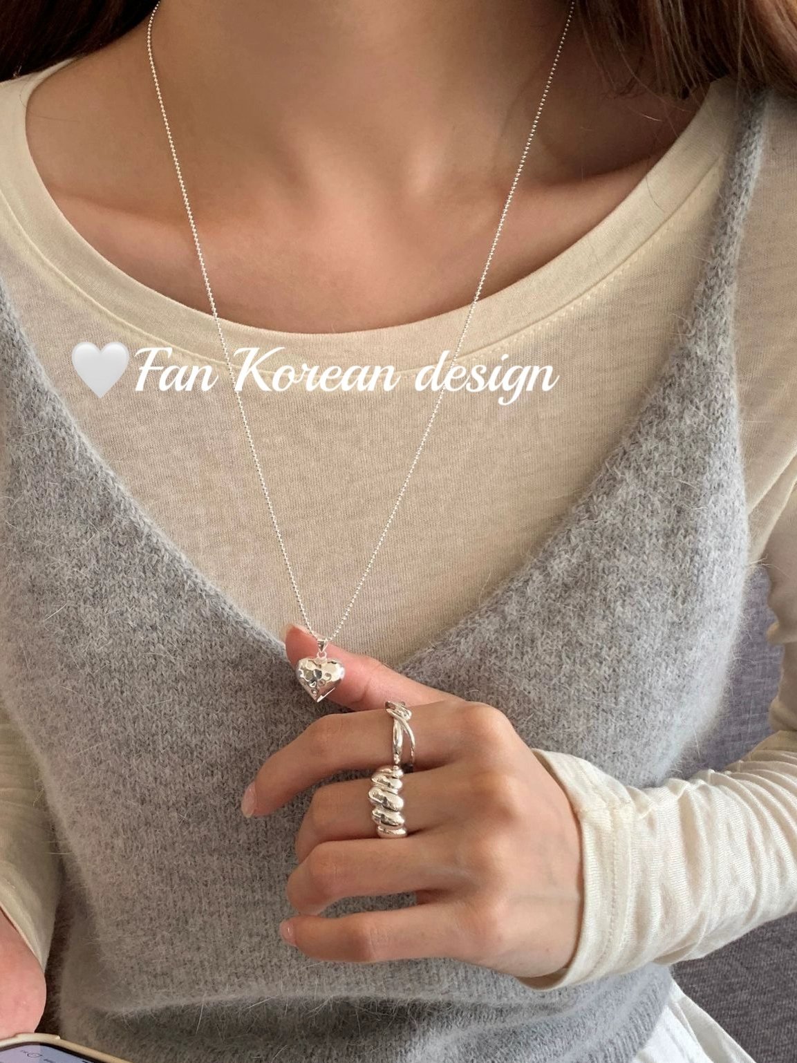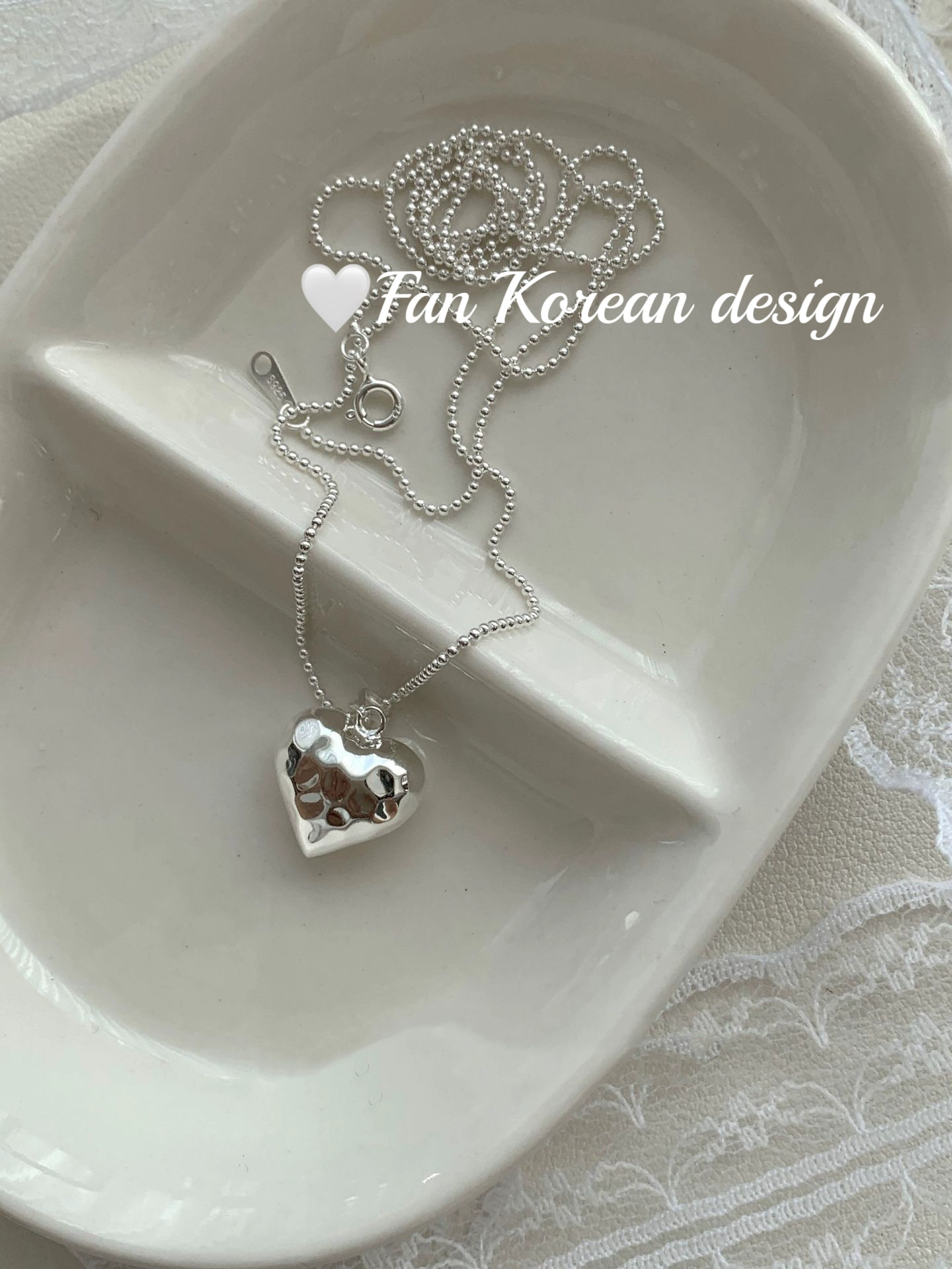 South Korea S925 all-over sterling silver long 60cm three-dimensional love hammer necklace ins style niche texture sweater chain