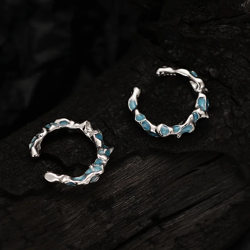 Spicy Girl Coral Blue Ear Clip Wholesale S925 Sterling Silver Deep Sea Series Drop Glaze Shaped Ear Clip Female