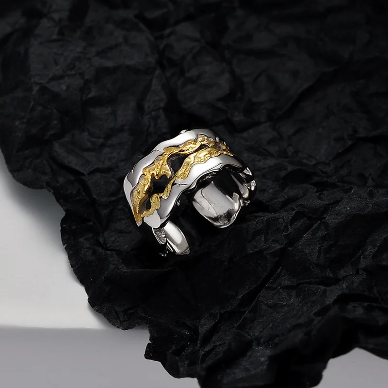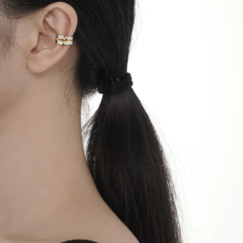 Sweet Cool Girl S925 Sterling Silver Two Tone Ear Clip Wholesale Personalized Original Design Texture Texture Earrings for Women