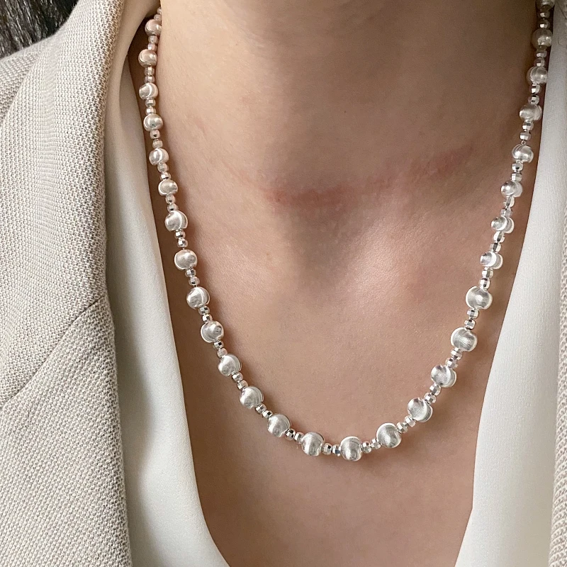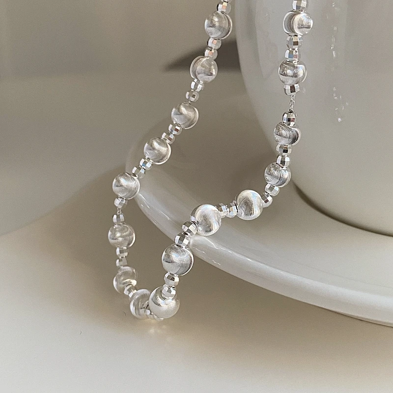 Whole Body S925 Sterling Silver Cat’s Eye Bead Necklace Niche Design Light Luxury High-end Sense Retro Simple Collarbone Chain
